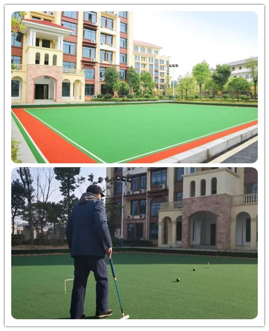 室外的活動廣場,有門球場及各類康體器材,能夠滿足老人的日常休閑、鍛煉需求,平時老人們曬太陽、康復(fù)訓(xùn)練以及志愿者獻愛心、集體生日等活動都可以在廣場上舉行。