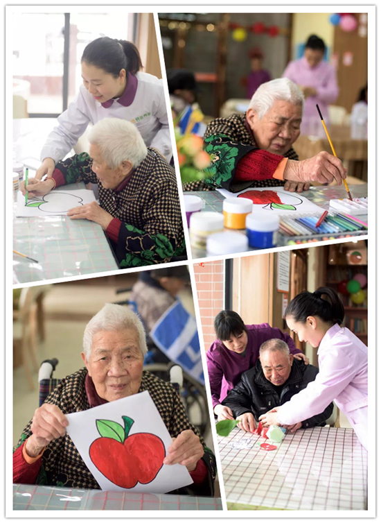 除了起居飲食康復(fù)等方面的專(zhuān)業(yè)照護(hù),養(yǎng)護(hù)中心還針對(duì)有需要的照護(hù)對(duì)象開(kāi)設(shè)了“懷舊療法”、“美術(shù)療法”、“音樂(lè)療法”等專(zhuān)業(yè)的照護(hù)服務(wù),將手工、美術(shù)、象棋、唱歌等活動(dòng)融入老年人的日常生活,在玩樂(lè)中實(shí)現(xiàn)貼心照護(hù)。