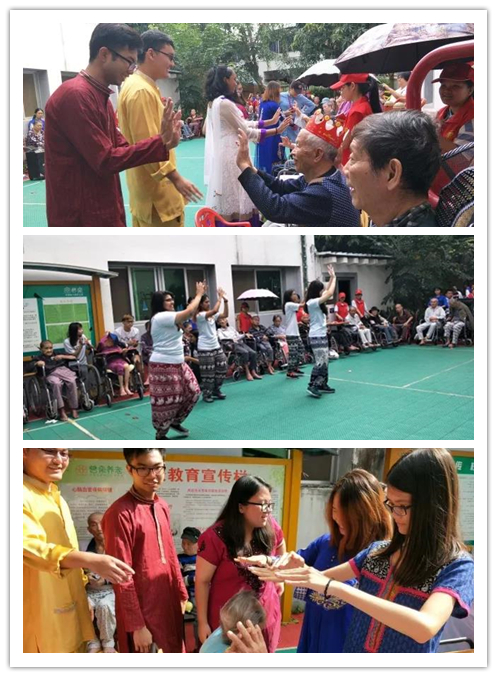 為了給爺爺奶奶們驚喜,社工還邀請(qǐng)到了國(guó)際志愿者,可愛的小哥哥小姐姐們?yōu)殚L(zhǎng)輩們帶來(lái)了異域風(fēng)情的馬來(lái)舞、印度走秀,引得現(xiàn)場(chǎng)陣陣掌聲。