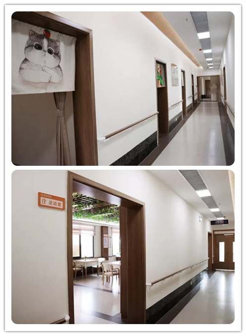 無障礙通道的設(shè)置,為養(yǎng)護(hù)中心的老人創(chuàng)造了日常室內(nèi)走動的便利,有效避免磕碰,長者們還可在康復(fù)師的指導(dǎo)及幫助下進(jìn)行各項(xiàng)康復(fù)鍛煉。