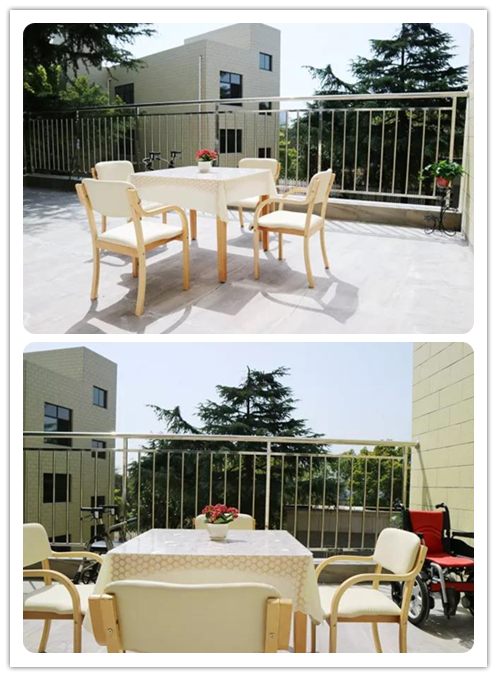 設(shè)于二樓的陽臺,是老人們經(jīng)常光顧的地方;他們在這里曬太陽、做鍛煉,與家屬及志愿者們聊天、下棋、做手工,收獲快樂也傳遞快樂。