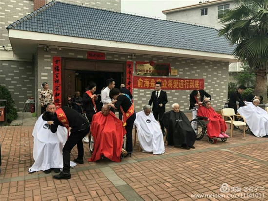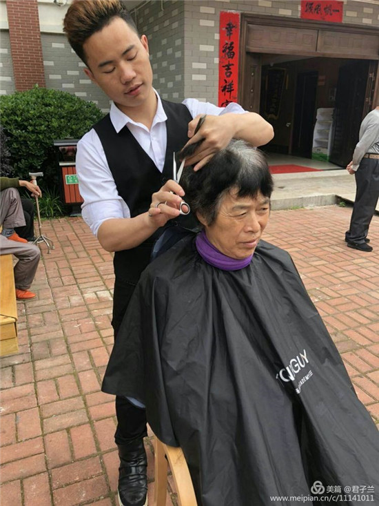 俞海蓮 美發(fā)在為老人義務(wù)理發(fā)!