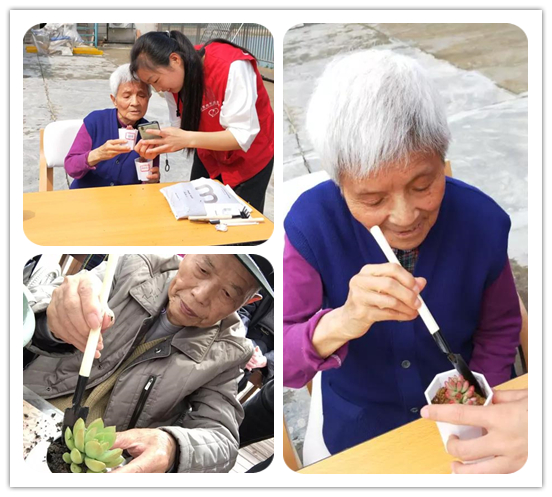 我們的爺爺奶奶在志愿者的幫助下,開始了高端大氣的“園藝治療”——培育屬于自己的小盆栽。來看看各個機構(gòu)發(fā)回的現(xiàn)場畫面吧!
