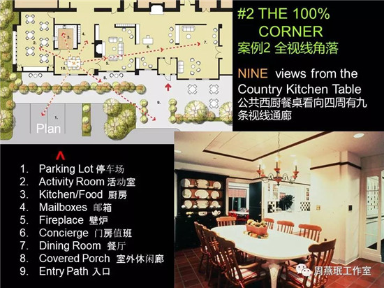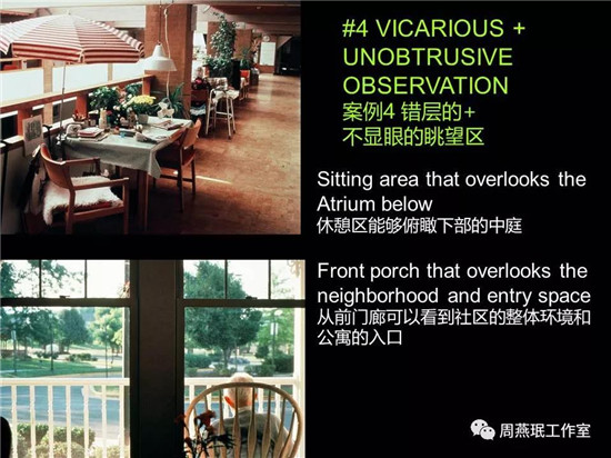 像這樣一種既能夠?yàn)橛^察者提供一些視覺上的保護(hù),又能夠鼓勵(lì)他們?nèi)ミh(yuǎn)眺景色而又不顯眼的眺望區(qū),對老人來說非常重要。這個(gè)是我覺得能夠提升社會交往興趣和相互遠(yuǎn)觀關(guān)注度的做法。