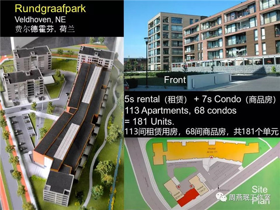 在中國,大項(xiàng)目可能更加適用一些,所以我展示這樣比較大型的終身照料設(shè)施。這個(gè)項(xiàng)目有260多間的普通公寓,還有150間的短期康復(fù)訓(xùn)練用的公寓。這個(gè)樓本身是混合使用的,一、二層的設(shè)施可以對周邊社區(qū)開放。