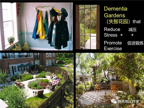 對于失智老人,有這樣一種失智花園非常重要,研究表明,這對于降低老人的醫(yī)療消費(fèi)十分有效。所以在失智設(shè)施中必須要有安全的失智花園。