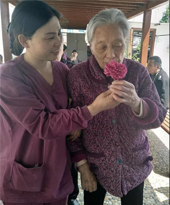 奶奶入住的時(shí)候不能言語(yǔ),剛開(kāi)始大家都以為鄭奶奶不會(huì)講話。細(xì)心的馬姐姐發(fā)現(xiàn)奶奶口里有痰并幫奶奶及時(shí)清理口腔痰液,奶奶開(kāi)口講了入住以來(lái)的第一句話:“謝謝”!