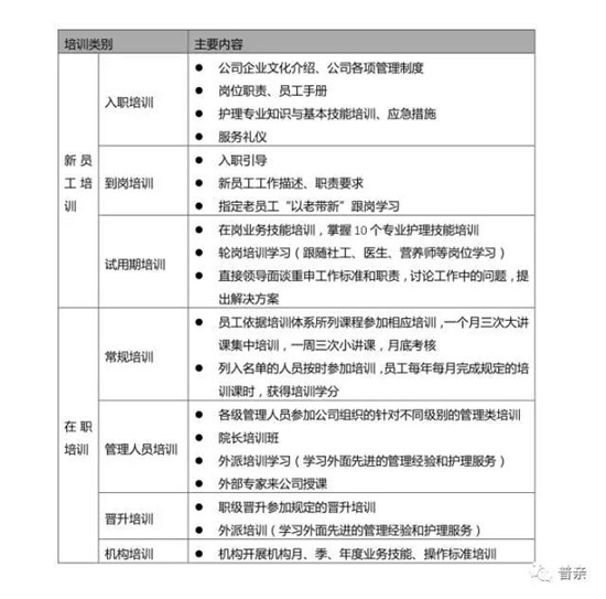 為了配合和適應普親旗下養(yǎng)老機構的連鎖化發(fā)展需要,人力資源部、機構管理中心會同標準化部制定每年度培訓計劃,按計劃安排和執(zhí)行,以提高公司員工的專業(yè)技能和職業(yè)素養(yǎng),提升公司整體從業(yè)水平。