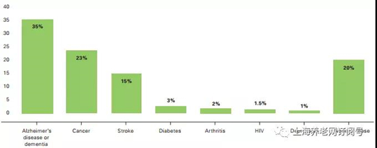認知癥不是單純的一種疾病,而是一組認知功能區(qū)全面或者持續(xù)減退的癥候群,美國養(yǎng)老機構(gòu)中大約60%的老人都患有認知障礙的疾病,其中阿爾茲海默病是導(dǎo)致認知癥最多的一個病因。
