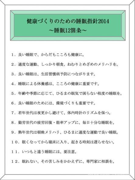 2014年3月,日本厚生労働省發(fā)表:健康睡眠12條指導(dǎo)方針