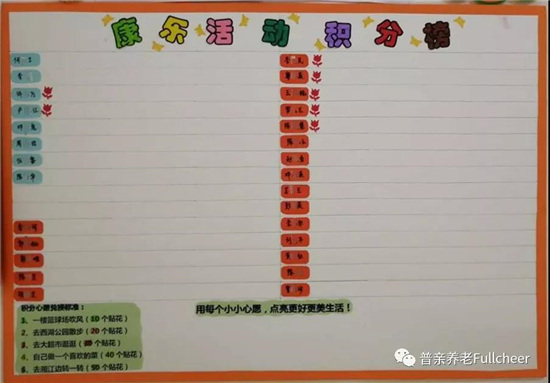 為了調(diào)動(dòng)老人參加活動(dòng)的積極性,她決定“搞個(gè)大事情”——推出康樂活動(dòng)積分榜。老人自由報(bào)名參加自己感興趣的活動(dòng),不同的活動(dòng)次數(shù)對(duì)應(yīng)不同的心愿,比如參與十次活動(dòng)就能獲得在隔壁籃球場(chǎng)散步的機(jī)會(huì)。