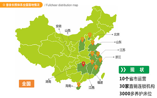 十年里,普親養(yǎng)老從海南開(kāi)始,一路向北,在湖南扎根,又陸續(xù)向江西、福建、浙江、安徽、江蘇、山東、北京等省市挺進(jìn),到目前已實(shí)現(xiàn)了10個(gè)省市運(yùn)營(yíng),30家直營(yíng)連鎖機(jī)構(gòu),3000多養(yǎng)護(hù)床位的連鎖版圖目標(biāo)。