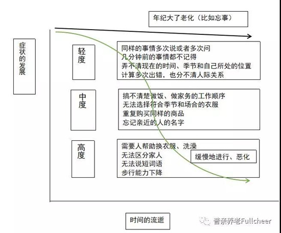 認(rèn)知癥伴隨病狀的發(fā)展,老人后天習(xí)得的知識(shí)和社會(huì)規(guī)則等會(huì)從最新的部分而不是以前的部分開始慢慢遺忘。