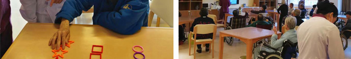 普親龍溪老年養(yǎng)護(hù)中心采用分級(jí)分區(qū)護(hù)理制度,將失智區(qū)與失能區(qū)進(jìn)行嚴(yán)格地劃分。失智區(qū)活動(dòng)空間設(shè)計(jì)成洄游式格局,以滿足失智老人對(duì)“小空間”的需求,有效緩解老人的焦慮感;失能區(qū)則更注重空間的大、透、亮,能夠讓老人們?cè)跍剀坝袗鄣沫h(huán)境里開展拼圖、插花、繪畫等個(gè)性化的康復(fù)訓(xùn)練。