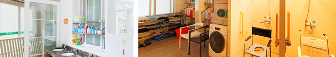 公共設(shè)施有夜間墻地照明燈、安全扶手、防滑地磚、裝有24小時(shí)智能監(jiān)控設(shè)施、24小時(shí)緊急呼叫系統(tǒng)、無障礙的衛(wèi)生間和寬敞的沐浴室以及大型消毒洗衣機(jī)房;房間內(nèi)擁有空調(diào)、呼叫系統(tǒng)、智能護(hù)理床等;公共活動(dòng)中心有電視、冰箱、儲(chǔ)物柜供老人使用;此外還有專門的康復(fù)健身房、棋牌室等;園區(qū)擁有活動(dòng)室、健身廣場(chǎng)、康復(fù)室、乒乓球室、會(huì)議室、多功能廳,延緩老人機(jī)體或智力衰退,讓每位住戶充實(shí)愉悅之外不斷獲取新知新識(shí);同時(shí)每周聯(lián)合�?诟鞔蟾咝V驹刚唛_展豐富多彩的文娛活動(dòng),提升老人生活品質(zhì)。