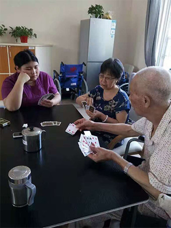 長(zhǎng)沙普親老年養(yǎng)護(hù)院不僅能接收失能、失智老人,也為自理老人劃分出獨(dú)立的分區(qū)。這些健康老年人住在一起,家長(zhǎng)里短,不僅能增加老年人相互之間的社會(huì)交往,擴(kuò)大社會(huì)聯(lián)系,還能給生活增添更多的樂趣和歡笑;同時(shí)普親老年養(yǎng)護(hù)院里開設(shè)有多功能閱讀室、開放式集中活動(dòng)室等,能夠滿足健康老人的多樣化精神需求,各類富有趣味性的活動(dòng)也應(yīng)有盡有。(比如做手工、下棋、打麻將、打撲克、寫毛筆字、畫畫、唱歌、跳舞做操等)