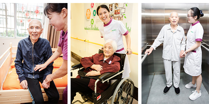 由經(jīng)驗(yàn)豐富的醫(yī)生、護(hù)士、營(yíng)養(yǎng)師、護(hù)理員、廚師、康復(fù)師等組成的專業(yè)團(tuán)隊(duì),嚴(yán)格按照1:3的照護(hù)比例,為入住老人提供完善的起居照顧、護(hù)理服務(wù)、膳食服務(wù)、康復(fù)照顧、醫(yī)療保健、精神慰藉、喘息服務(wù)等方面的長(zhǎng)期照護(hù)服務(wù)。