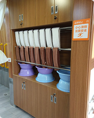 長(zhǎng)沙市普親先鋒社區(qū)老年養(yǎng)護(hù)中心內(nèi)設(shè)有起居室、護(hù)理間、老年活動(dòng)室、康復(fù)診療室、心理咨詢室、洗浴間、洗漱間、衛(wèi)生間等功能空間,遵循無障礙設(shè)計(jì)理念,功能布局上注重干濕分區(qū),嚴(yán)格甄選環(huán)保、醫(yī)療級(jí)材料,配置了智能化護(hù)理床、智能恒溫沖洗馬桶、一鍵呼叫系統(tǒng)、全天候中央熱水系統(tǒng)等人性化的設(shè)施設(shè)備,還配置了24小時(shí)安全監(jiān)控系統(tǒng)、電梯門禁安全系統(tǒng)等,為入住長(zhǎng)者提供安全、舒適的生活環(huán)境。