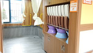 養(yǎng)護(hù)中心的改造以普親養(yǎng)老機(jī)構(gòu)3.0版本為標(biāo)準(zhǔn),布局有起居室、活動(dòng)室、康復(fù)診療室、心理咨詢室、洗浴間、洗漱間以及衛(wèi)生間等功能性空間,室內(nèi)各項(xiàng)配套設(shè)施嚴(yán)格遵循無障礙設(shè)計(jì)理念,充分考慮到失能失智及高齡老年人生理特征,注重干濕分區(qū),甄選環(huán)保材料,配置智能化護(hù)理床、智能恒溫沖洗馬桶、一鍵呼叫系統(tǒng)、全天候中央熱水系統(tǒng)等人性化的設(shè)施設(shè)備,還配置了24小時(shí)安全監(jiān)控系統(tǒng)、電梯門禁安全系統(tǒng)等,為入住長(zhǎng)者提供舒適、安全的生活環(huán)境。