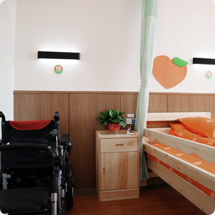 養(yǎng)護(hù)中心以普親養(yǎng)老統(tǒng)一的視覺識(shí)別系統(tǒng)為標(biāo)準(zhǔn),橙綠作主色,柔軟清新,室內(nèi)選用各式木質(zhì)家具,打造原生態(tài)感,提升居住品質(zhì);按照普親養(yǎng)老機(jī)構(gòu)3.0版本的建設(shè)標(biāo)準(zhǔn),養(yǎng)護(hù)中心配備了一鍵呼叫系統(tǒng)、24小時(shí)監(jiān)控設(shè)備、無障礙門禁電梯、全天候中央熱水系統(tǒng)以及高速無線網(wǎng)絡(luò)等設(shè)施設(shè)備,便利老人的在院生活。