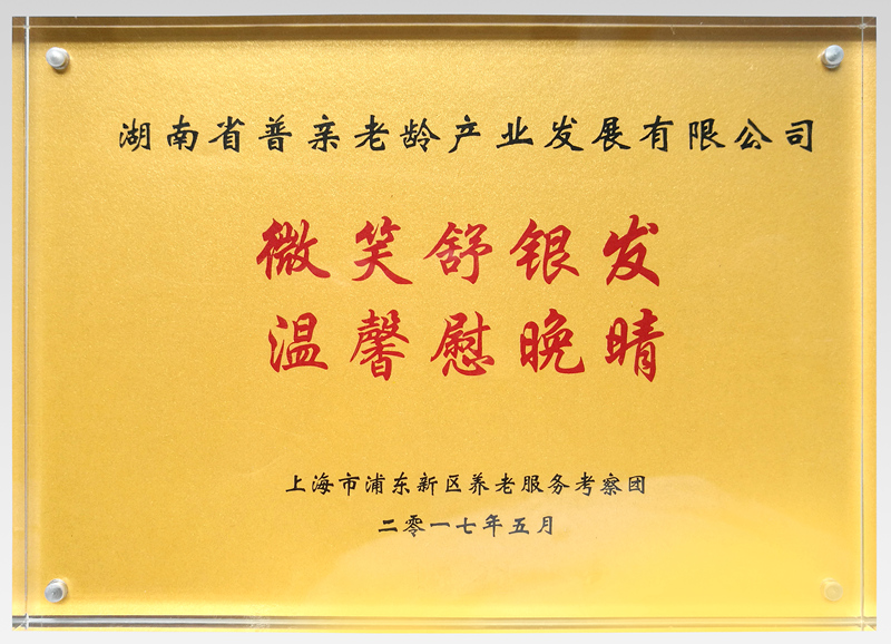 上海市浦東新區(qū)養(yǎng)老服務(wù)考察團贈湖南普親老齡產(chǎn)業(yè)發(fā)展有限公司“微笑舒銀發(fā)·溫馨慰晚晴”