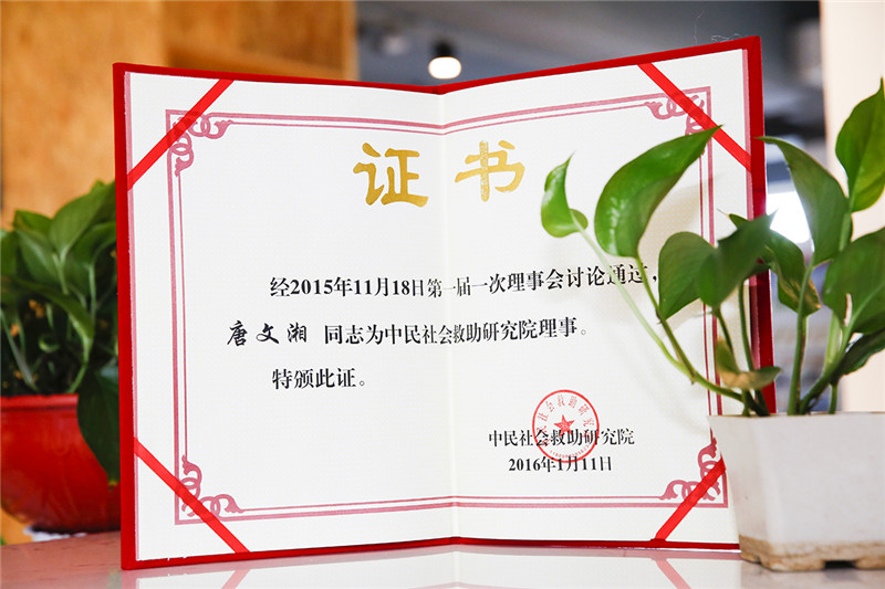 董事長(zhǎng)唐文湘先生當(dāng)選中民社會(huì)救助研究院理事