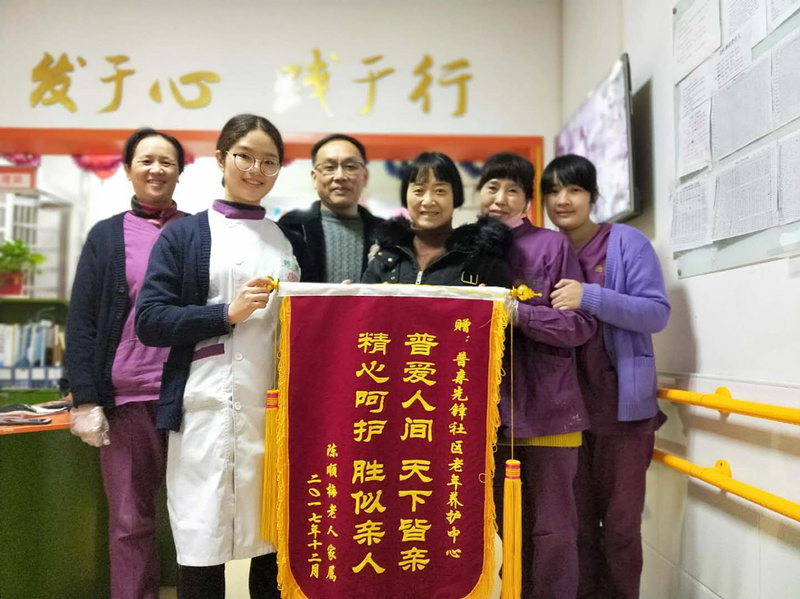 先鋒機構(gòu)老人家屬贈:普親先鋒社區(qū)老年養(yǎng)護中心“普愛人間 天下皆親,精心呵護 勝似親人”
